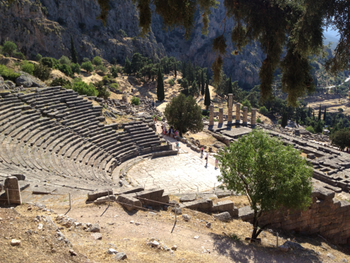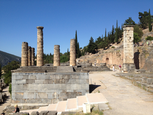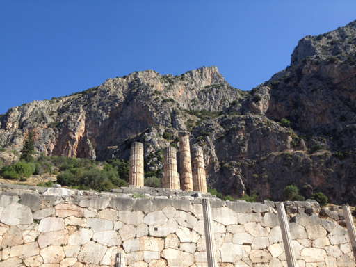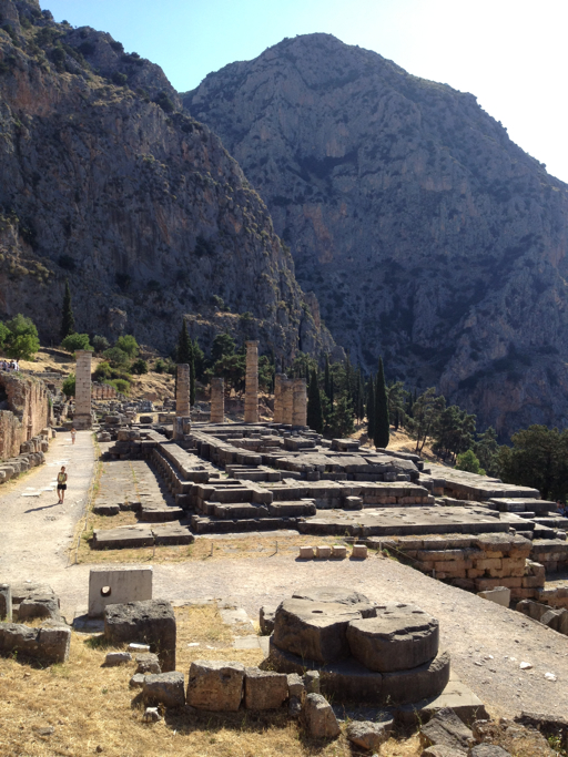 Entering the sanctuary of Apollo at Delphi, we walked up the Sacred Way, winding our way through numerous memorials and treasuries built by the various Greek city-states.