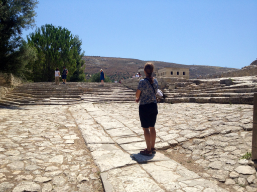 We ended the tour in the Theater, which you can see is quite different from the Greek and Roman Theaters. The Minoan Theater is lower, and square, instead of semicircular.