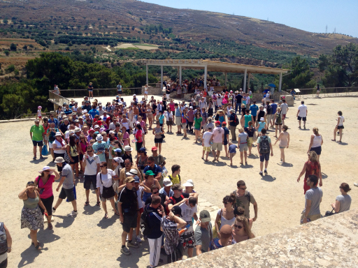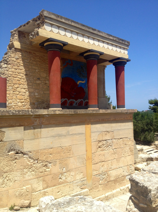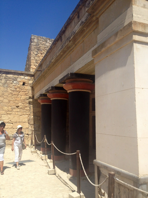 Well, we were finally able to get to the Minoan ruins at Knossos yesterday. Unfortunately, because we had to make the hour and a half drive to the ruins from Rethymnon back through Heraklion, we weren’t able to beat the tour buses to the site and it was quite busy by the time we got there. Traffic in Heraklion, the capital of Crete, is crazy.