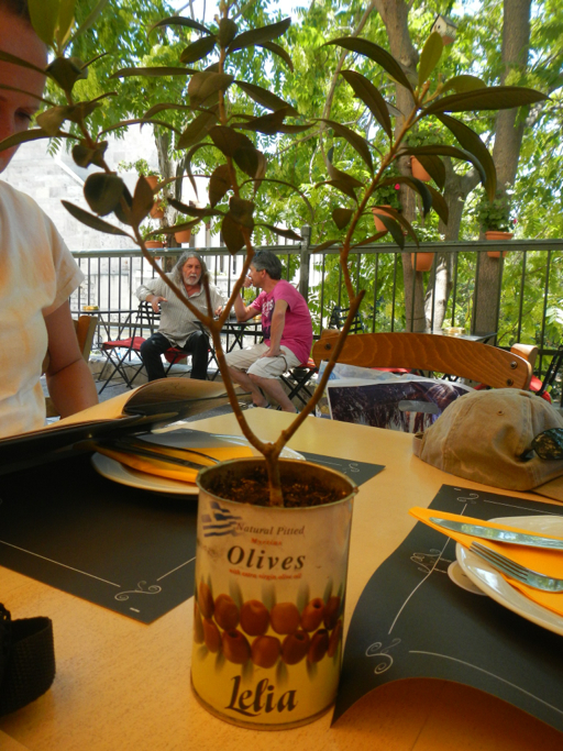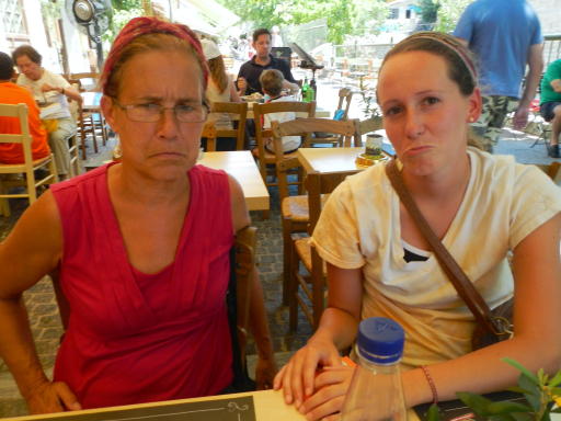 Our hike up to the Acropolis left us hungry and thirsty, so we headed back down to the touristy restaurant row area near the Roman ruins for an early dinner.