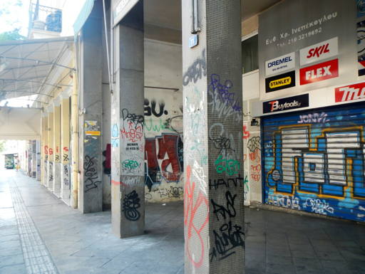 But even more emblematic of the dire straits of the Greek economy than the closed shops is the terrible graffiti problem throughout the country, far worse than anything I have seen anywhere in the world. And here in Athens, it looks like the local authorities make no effort whatsoever to prevent or clean up the spray paint scribblings that multiply daily as more and more young Greeks despair of their future here.