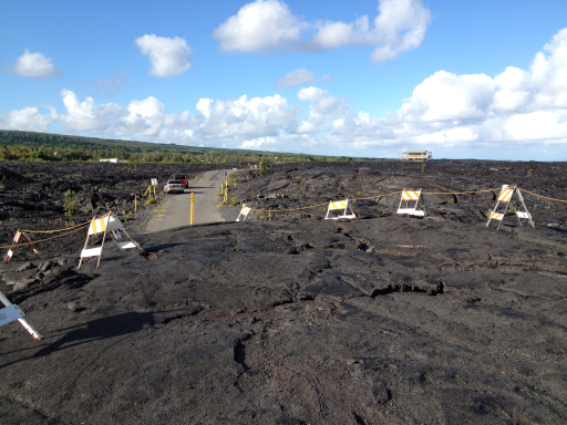 At the viewing point, we talked with one of the security guards and he told us that he lives in one of these houses. He was from Alabama and is semi-retired. He told us that when he was trying to decide where he wanted to retire, he narrowed it down to the Florida Keys and Hawaii, ultimately deciding on Hawaii. His analysis: you never know if or when another lava flow will come, but you do know there will be time to get out of its way; but in the Keys, you always know that a hurricane will eventually come, but there’s nothing you can do about it.