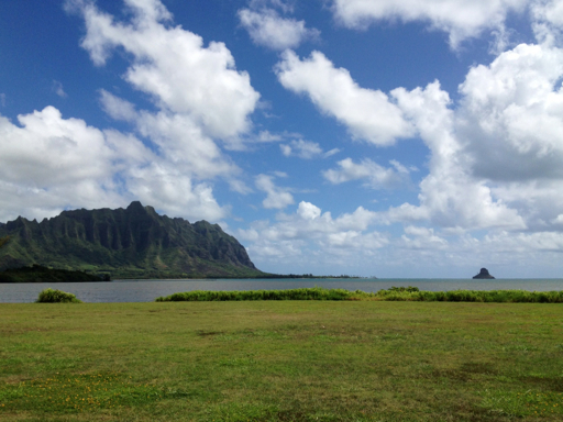 A little further up the road, after leaving Byodo-In Temple, we passed a small offshore island, fittingly called “Chinese Hat;” that’s it on the right.