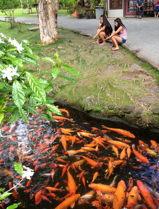 This morning, we drove up the windward coast of Oahu. About a third of the way to the far north end, we stopped at the Byodo-In Temple, a Japanese Buddhist temple built in 1968 to commemorate the first Japanese immigrants to Hawaii. It was just like being in Japan.