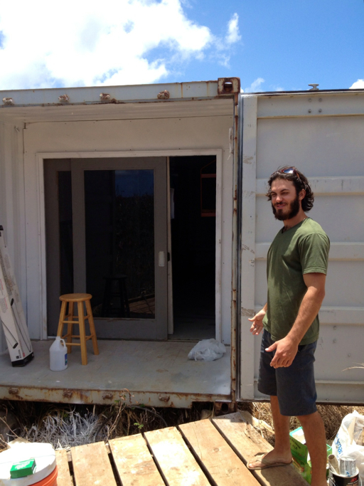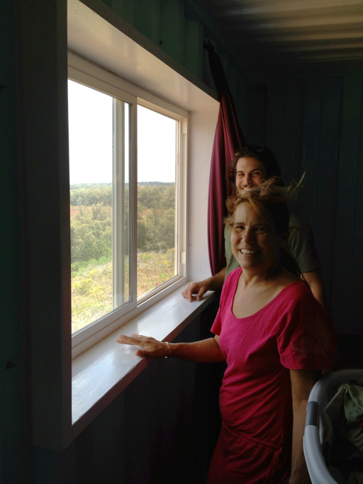 He’s got quite a view from the window he and Cove cut out of the side of the container. It’s kind of like a wheel-less RV!