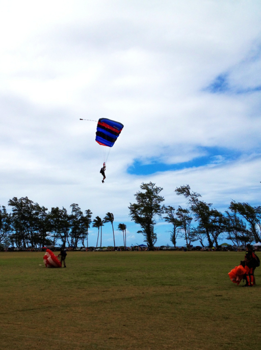 After the kid’s game, the “half-time” entertainment consisted of a parachute drop…