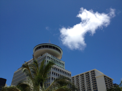 We’re in Honolulu now, walking around Waikiki. That looks like a cool restaurant up there…