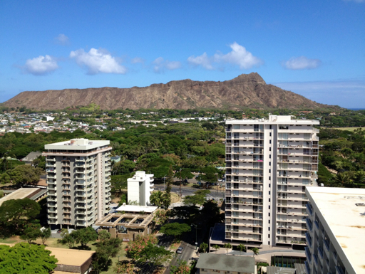 Our hotel was on the western end of Waikiki Beach which gave us a nice view of the extinct volcano known as Diamond Head.