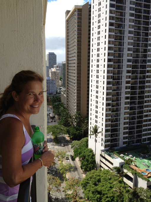 Waikiki, like Galt Ocean Mile and Miami Beach in Florida, is littered with high-rises, though here most are hotels. Here’s a view from our room on the top floor of the Hyatt.