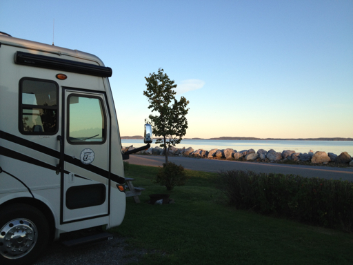 When we pulled into St. Andrews on Tuesday, we followed the signs that said “Oceanfront Camping” and ended up at a beautiful campground overlooking the Bay of Fundy that was run by the local Kiwanis. Here’s a view of our view: