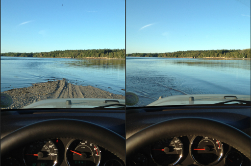 Before we settled in for the evening, we took a drive around the area, ending up at the causeway to Minister’s Island. The causeway is submerged at high tide, but is drivable at low tide. We got there around mid-tide as the tide was coming in; and the tide in the Bay of Fundy comes in really fast.