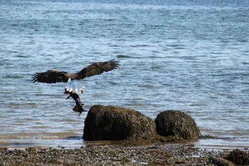While we were driving across the causeway, two bald eagles came swooping in and Dale was able to get this great photo of them: