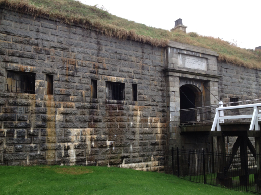 You might recall from my prior post regarding the Fortress of Louisbourg that after the English ceded Cape Breton Island back to the French in 1748 at the end of the War of Austrian Succession, the British forces retreated to Halifax where they built a town and fort. That original palisade fort was built on a hill overlooking the harbor and town; it was reconstructed, again of wood, around the time of the American Revolution, and, again in the 1790s at the onset of the French Revolution in Europe.