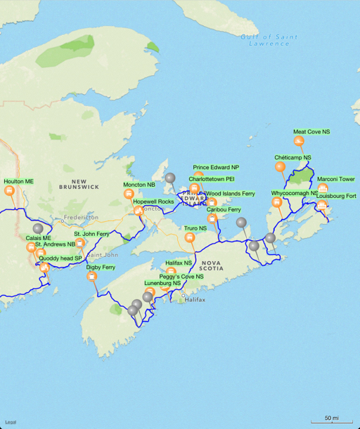 Here’s a map of our travels through the Maritime Provinces of Canada: