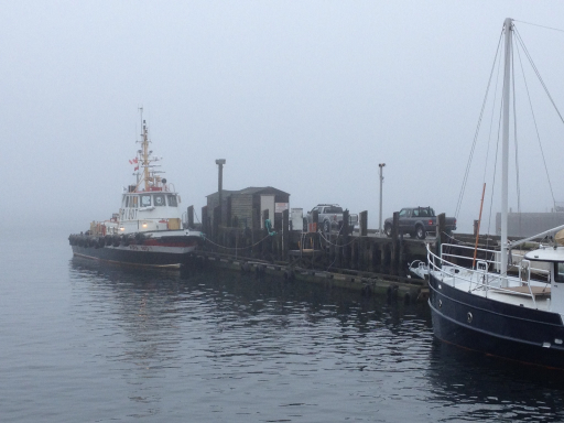 First though, here are two photos that I took on the Halifax waterfront in the mist before we drove south to Lunenburg: