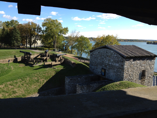 Fort Niagara sits at the mouth of the Niagara River where it empties into Lake Ontario; Niagara Falls lies up river several miles, between Fort Niagara and Grand Isle. The Niagara River is, of course, impassible at this point because of the Falls, but the location of the fort has been strategic, historically, because it is the location of the shortest portage between the Lake and the River, circumventing the Falls.