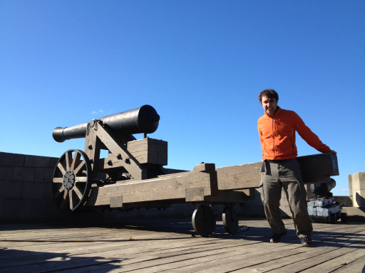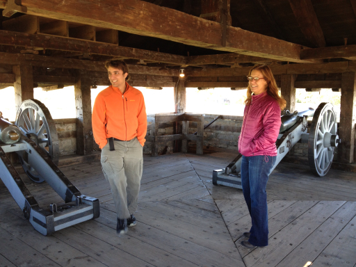 We climbed down from the redoubt, then back up on the fort walls where Trevor tried to re-aim one of the cannons…
