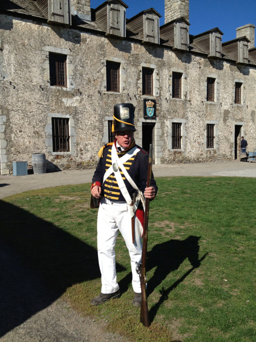 While we were at Fort Niagara, we got a history lesson about the uniforms and firing procedures used by the Americans in the War of 1812. The presentation was both informative and humorous, our “teacher” explaining that the tall hats were intended to make the soldiers look bigger to the enemy with the crossed white uniform belts forming an “X” target on each soldier.