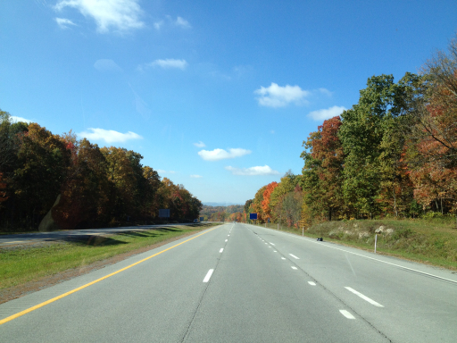 We left Buffalo on Monday, planning to drive to Gainesville without stopping to do any sightseeing or excursions. We’ve really enjoyed being in the northeast to see the leaves change; the leaf-peeping season came earlier this year than it did last year. This photo was taken in New York, not long after leaving Buffalo: