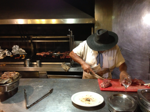 Dale ordered a “lomo” which we’re pretty sure was a gigantic filet mignon; hers was probably cooked on the grill behind our gaucho chef, chopping away in this photo: