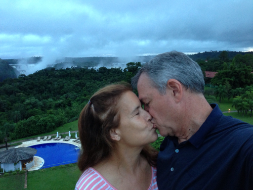 We landed in Iguazu and checked into our hotel, another Sheraton, just as the sun was about to go down. But there was still time for a Valentine’s Day kiss with the Iguazu falls as a backdrop.