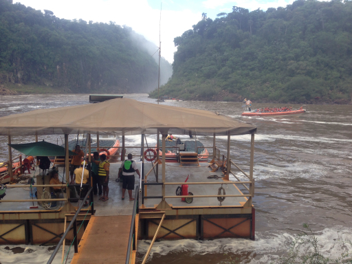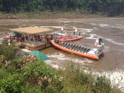 We had made reservations for the Aventura Náutica earlier in the morning to do just that, so after our leisurely drift in the inflatable, we walked back down to the lower Rio Iguazú to go on the pontoon powerboat ride.