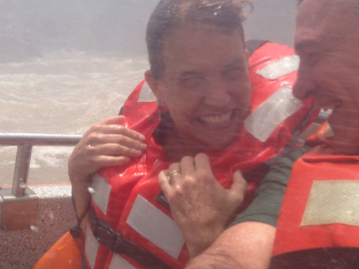 Now we understood why they use pontoon boats: they flood with water from the falls dumping into them.