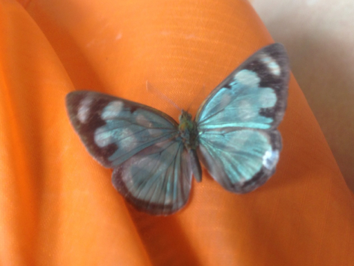 Although we took the tram up to the Devil’s Throat lookout, we returned to the main park by water on a 10-person inflatable. While we were waiting to launch, two unusual butterflies landed on Dale, posing for my camera.