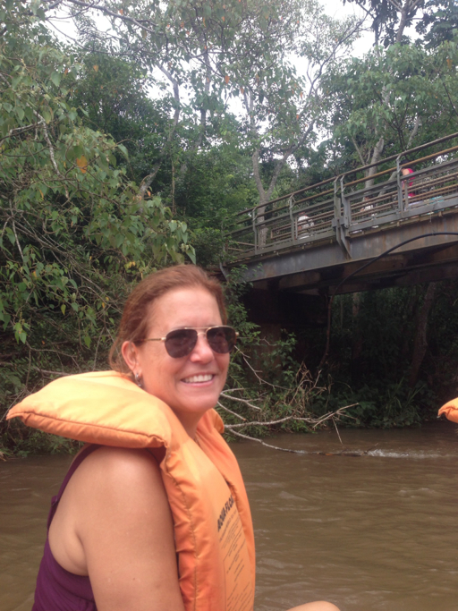 But the stream opened up into the main flow of the Rio Iguazú and we prayed that our helmsman knew which way to go. We really didn’t want to go over the Falls (notice the mist rising from the Falls on the right)!