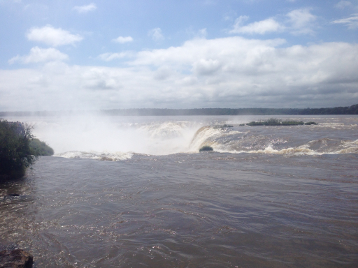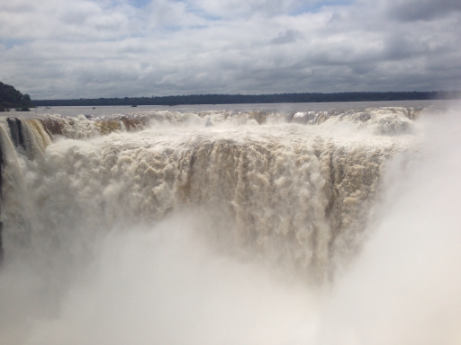The Rio Iguazú didn’t seem to be flowing all that fast as we approached the rim, but the sound of the water cascading over the Falls ahead was ominous.