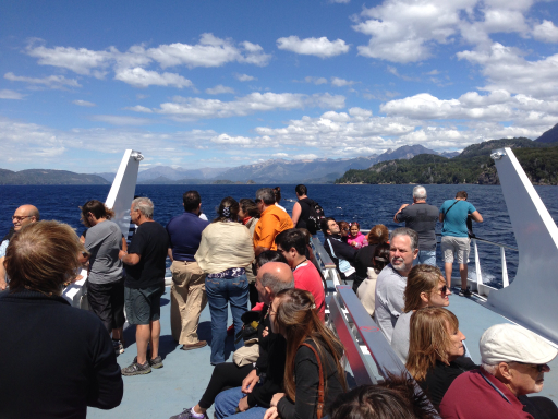 This afternoon, we journeyed around Lago Nahuel Huapi on the “Cau Cau.” The boat was scheduled to leave Puerto Pañuelo at 2:00 p.m., with a return at 7:00 p.m.