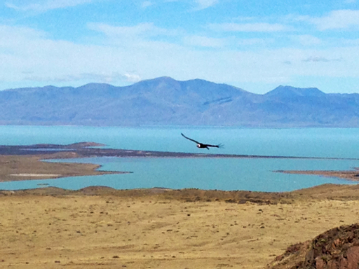 As we sat, Dale said, “Wouldn’t if be cool if a condor flew by?” The minute she finished that sentence, she noticed a large bird flying along the edge of the bluff, gliding on the updraft from the heated plain below.
