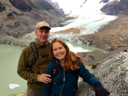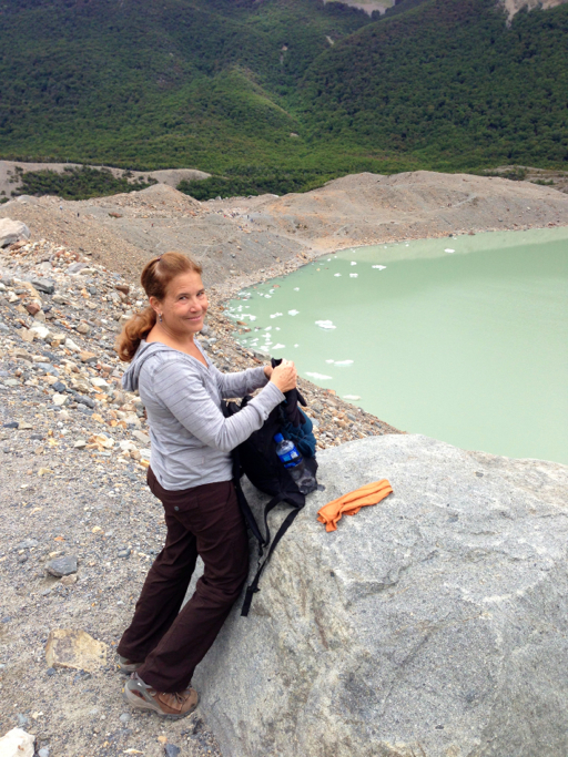…where we stopped, briefly, to have a snack and put on our jackets and gloves. Notice the ice floating in Laguna Torre.