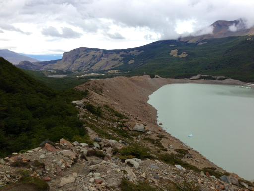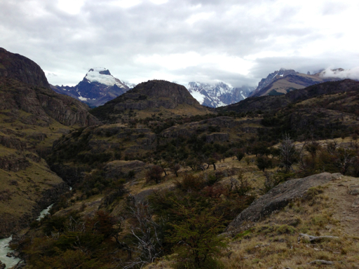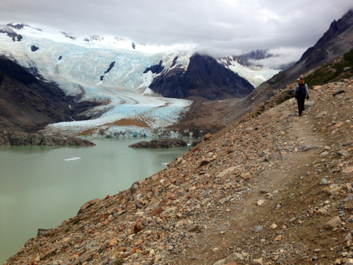 After a couple miles, the trail descended slightly and the panorama opened up to include the base of Cerro Torre. Unfortunately, it was an overcast day, so we were unable to see the peaks of either Corre Torre or Monte Fitz Roy.