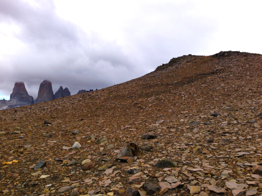 And here’s a last look back up toward the summit with the Three Towers in the distance.