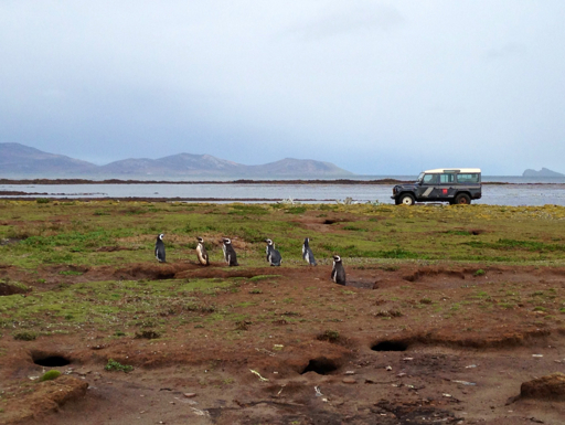 …so we headed back to the Rover, through a field of Magellanic Penguin burrows,…