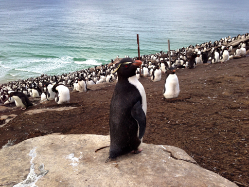 After dropping off our stuff in the Portakamp, we decided to go see the Albatross rookery that Suzan said we could find by following the fence line around the hill to the other side. Our path was blocked, however, by a huge colony of Rockhopper Penguins, another migratory species. These guys will be the subject of a later post…