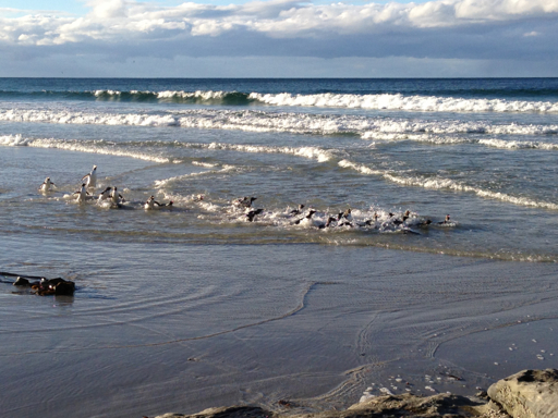 I must admit that I have a hard time grasping the whole concept of a bird that can’t fly, but is able to swim. I mean, what do you call a bunch of penguins emerging from the water? A flock? A school?