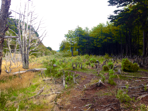 …through a small forest. As we were walking, Dale noticed that many of the trees had been felled, but there were no logs or branches laying around.