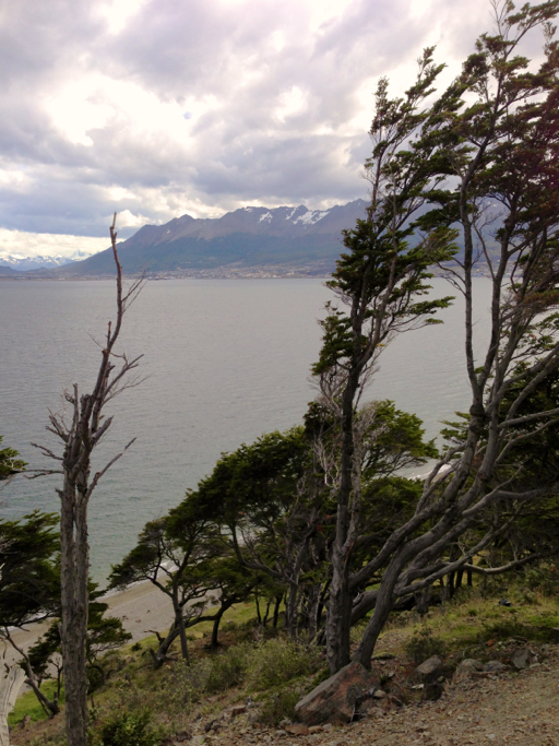 We drove along the harbor in front of the city, eastward out onto a point. Look at how the winds have made these Lenga trees grow.