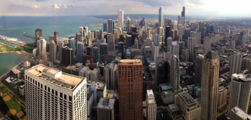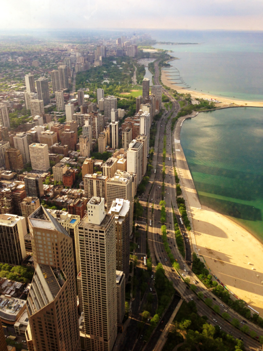 During our time here, we took in a view of the downtown from the top of the John Hancock Building, 95 floors up. Here’s a panorama view of the Windy City looking south from John Hancock: