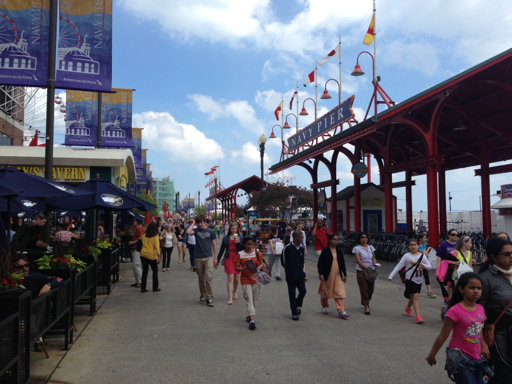 Navy Pier is an upscale amusement and entertainment venue that was originally exactly what its name implies: a Navy pier. It was busy on Tuesday with many student groups out on class trips.