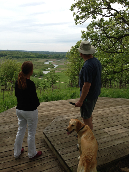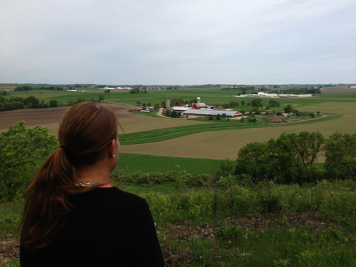 From the top of the hill, we had a great view of the surrounding farmland. This farmstead, with its red barn and silos, is typical of the scenery in rural Wisconsin.