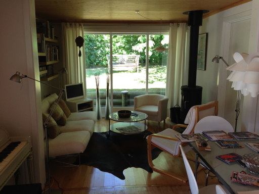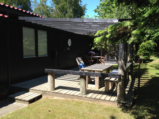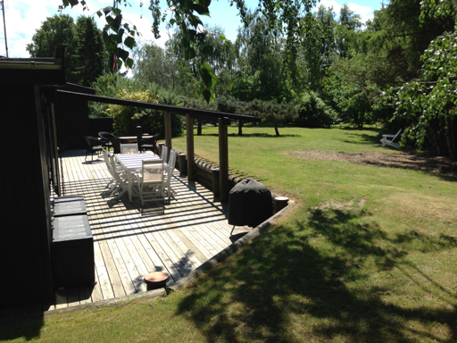 We are staying in one such locale, the hamlet of Hald on the north Zeeland coast, about 7 miles east of Hundested. Though this house was originally a builder’s shed, a number of the houses in the neighborhood were built in the 1960s as the first beach houses in this area. Meanwhile, this “builder’s shed” has been transformed by the Giles into a fabulous summer home. Here’s a view walking up to the house from the carport that sits alongside the road:
