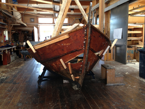 Not long ago, another group of students was out for a ride in one of the replicas, skippered by their teacher, who didn’t quite make the turn out of the channel. They slammed head-on into the dock, cracking a number of the planks at the bow, but, fortunately, not sinking.