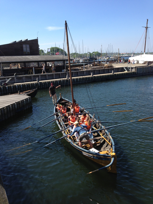 As we walked outside to look at the replica of the ocean-going trader, a group of students was in the process of taking one of the several copies of Skuldelev #3, the small trading vessel, out for an excursion in the fjord.
