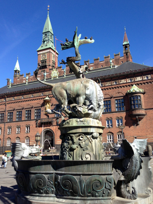 To the right of the photo, above, is the Rådhus (the City Hall), but we thought it was upstaged by the sculpture out front, the Dragon’s Leap Fountain (I think that’s what it’s called), depicting a sea dragon eating a bull. Weird.
