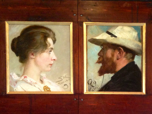 In particular, we enjoyed the paintings of the Krøyers and the Anchers. Here are portraits of Marie Krøyer and P. S. Krøyer from the dining room: