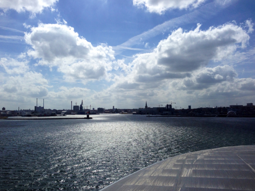 Our trip started Thursday afternoon with a short ferry ride from Hundested to Rørvig, followed by a high-speed ferry to Århus on the Jutland peninsula. About 1/3 of our first day of travel was by ferryboat. Here’s the view of Århus from the ferry.
