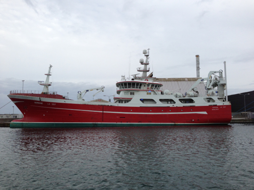 Most of the fishing boats we saw looked like icebreakers. Notice the bulbous battering ram at the waterline on the bow of this one: